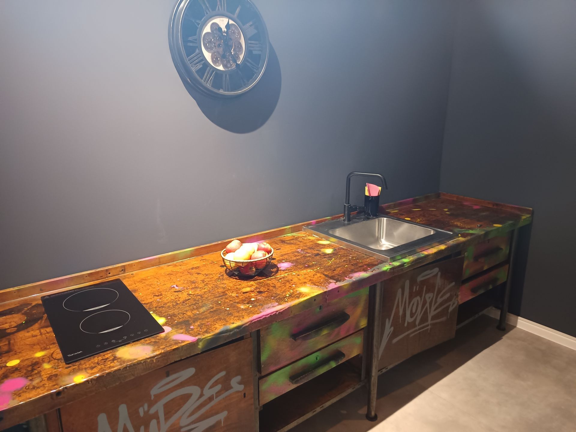 Für unsere Gäste gibt es eine Gemeinschaftsküche - inklusive allem, was man für's Kochen benötigt.